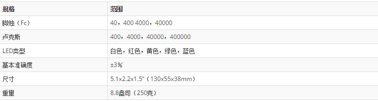 測量白色,紅色,黃色,綠色和藍色LED和標準照明在Lux或腳蠟燭(Fc)單位