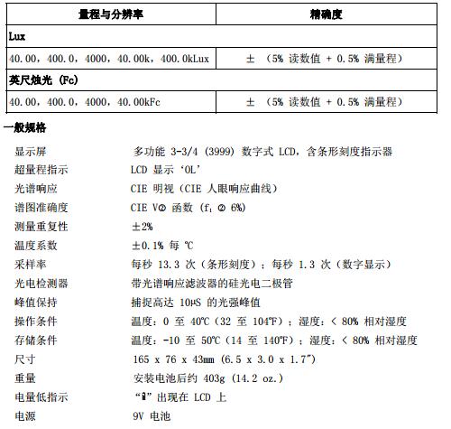 LT300 型數字式照度計。LT300 型可測量的光線強度級別(照度)可以達到 400,000 Lux (40,000 Fc)。LT300 型提供的功能包括背光顯示、MAX/MIN(最大值/最小值)、數據保持、相對值、峰值以及重置。該儀表在交付前均經過完整測試及校準,只要妥善使用,您便可常年享受其可靠服務。