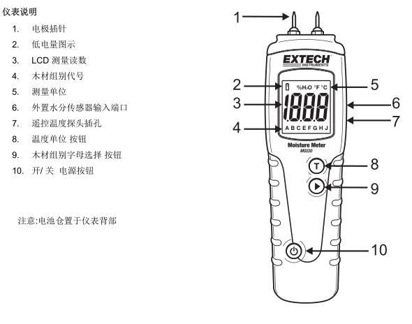 此儀表會于測量木材時于68°F (20°C) 進行校準。一般而言﹐木材溫度高于 68°F (20°C)會出現較高讀數及溫度低于 68°F (20°C)會出現較低讀數。當木材溫度高于68°F (20°C)﹐每9°F (5°C)便需手動校正減去0.5%水分含量。當木材溫度低于68°F (20°C)﹐每9°F (5°C)便需手動校正加上0.5%水分含量。