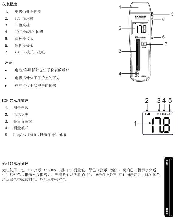 MO260 型水分儀。MO260 型水分儀能通過無創傷性方法(無插針)檢測木材和其他材料,例如刨花板、毛毯及天花板/浴室瓷磚中的水分;MO260 型水分儀還可通過插針法測量石板和其他建筑材料中的水分。該儀表在交付前均經過完整測試及校準,只要妥善使用,您便可常年享受其可靠服務。