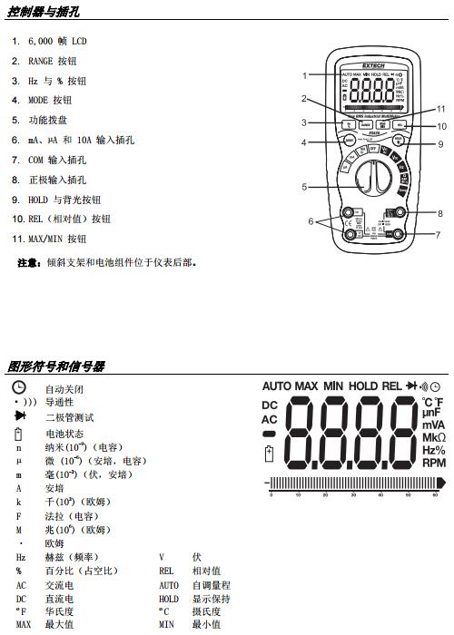 EX520 真有效值自調量程萬用表。此表可測量交流/直流電壓、交流/直流電流、電阻、電容、頻率(電氣與電子),二極管測試以及導通性與熱電偶溫度。其堅固耐用的設計可用于重型用途。正確并小心使用此儀表,您便可常年享受其可靠服務。
