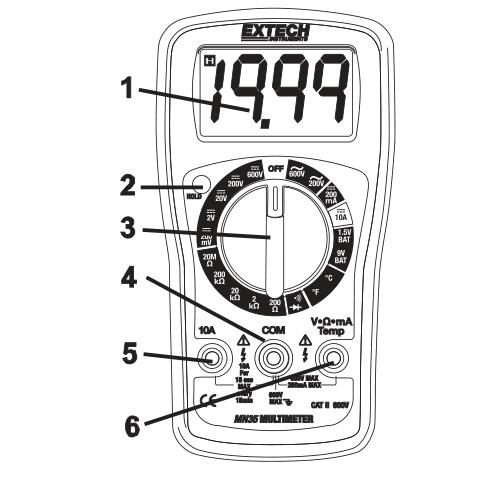 4.重置功能開關, 以連續較低的位置獲得更高的分辨率讀數。如果極性反向 (僅限直流電壓), 顯示器將顯示 (‐) 減去之前的值。