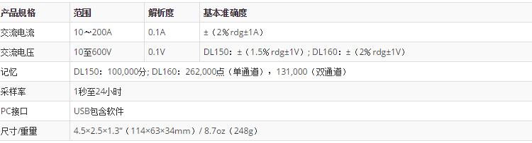 三、EXTECH DL160 規格特征 :