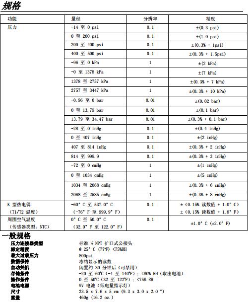 可測量 psi、kPA、inHg、cmHg、bar、K 型溫度和周圍空氣溫度