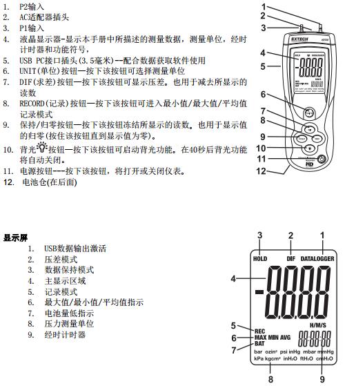 HD750型Extech壓力計?該款設備測量表壓和壓差,精度范圍是+5.000psi? HD750提供11種測量單位(用戶通過面板上的按鈕選擇測量單位),有一個壓差輸入口,采用方便的快速斷開裝置?其他高級功能還包括數據保持,最小值-最大值-平均值記錄模式,歸零/偏移,自動關機和USB PC接口? 該儀表在出廠前完成了全部測試和校準,如精心使用,可提供多年的可靠服務?