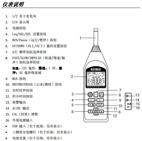 6. 顯示屏上的數字指示表示當前測得的聲級。此讀數每秒鐘更新一次。