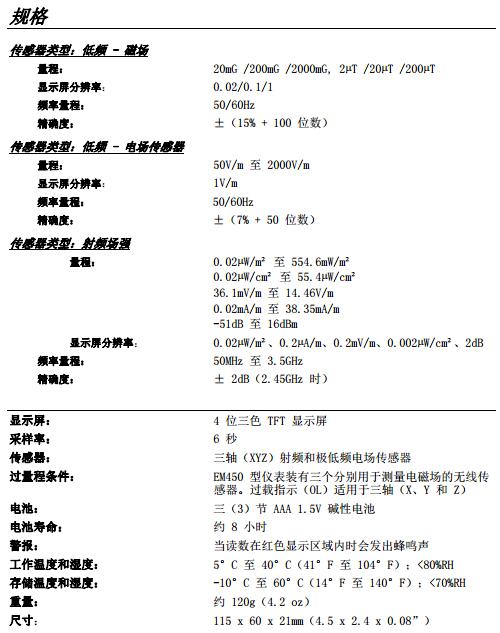 EMF450可同時測量并顯示磁場、電場和射頻的場強。測量單位和測量類型分別用電場和磁場強度單位和能量密度表示。該儀表是測量電力線、電器、工業裝置、手機、基站及微波泄漏產生的電磁場的理想選擇。該儀表在交付前均經過全面測試及校準,若使用得當,可提供多年可靠的服務。