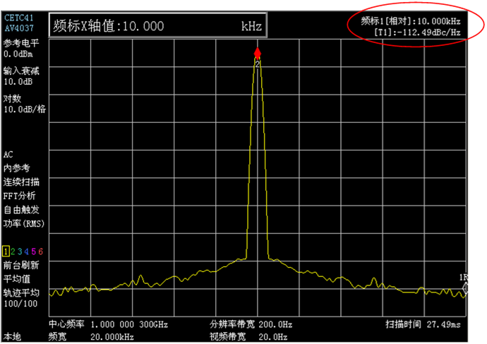 本產品擁有優良的相位噪聲性能,載波1GHz頻偏10kHz處,相位噪聲達-110dBc/Hz(典型值)。