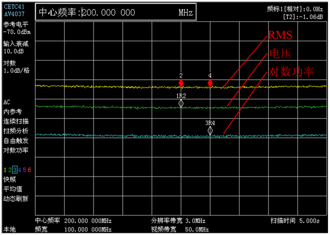 提供多達6條顯示軌跡,支持多條軌跡不同視頻檢波方式下的同步測試;提供多達12個頻標,讀數方式靈活,支持頻標跨軌跡標識。