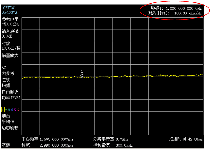 開啟內部前置放大器,顯示平均噪聲電平(DANL)低至-165dBm/Hz(1GHz處,典型值)。