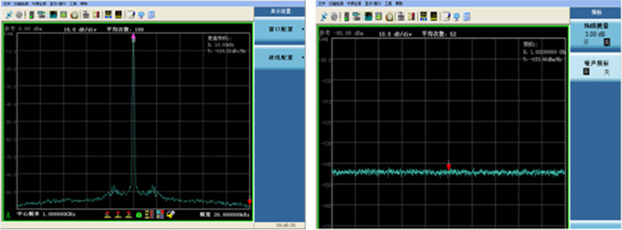 • 載波1GHz、頻偏10kHz時,相噪指標優于-115dBc/Hz。
