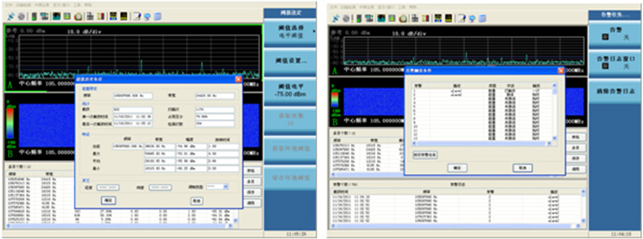 • 具有瀑布圖、閾值能量圖、告警窗口、能量檢測窗口和頻率列表窗口等全面的信號分析工具和圖表。