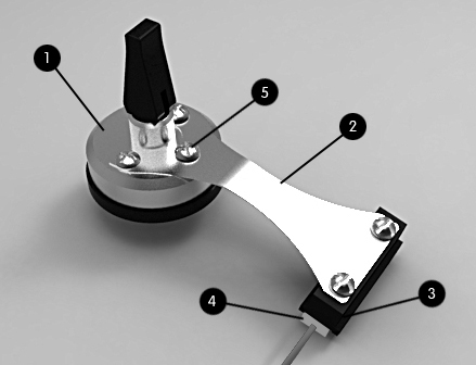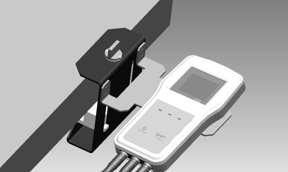 同樣,需要將電池板溫度探頭安裝在電池板背板,可采用下圖的支架吸附安裝或采用其他自行認可安裝方式。可將圖中1所示吸盤吸附在電池板背面,然后用3所示壓槽將4所示溫度探頭壓附貼緊在電池板背面。
