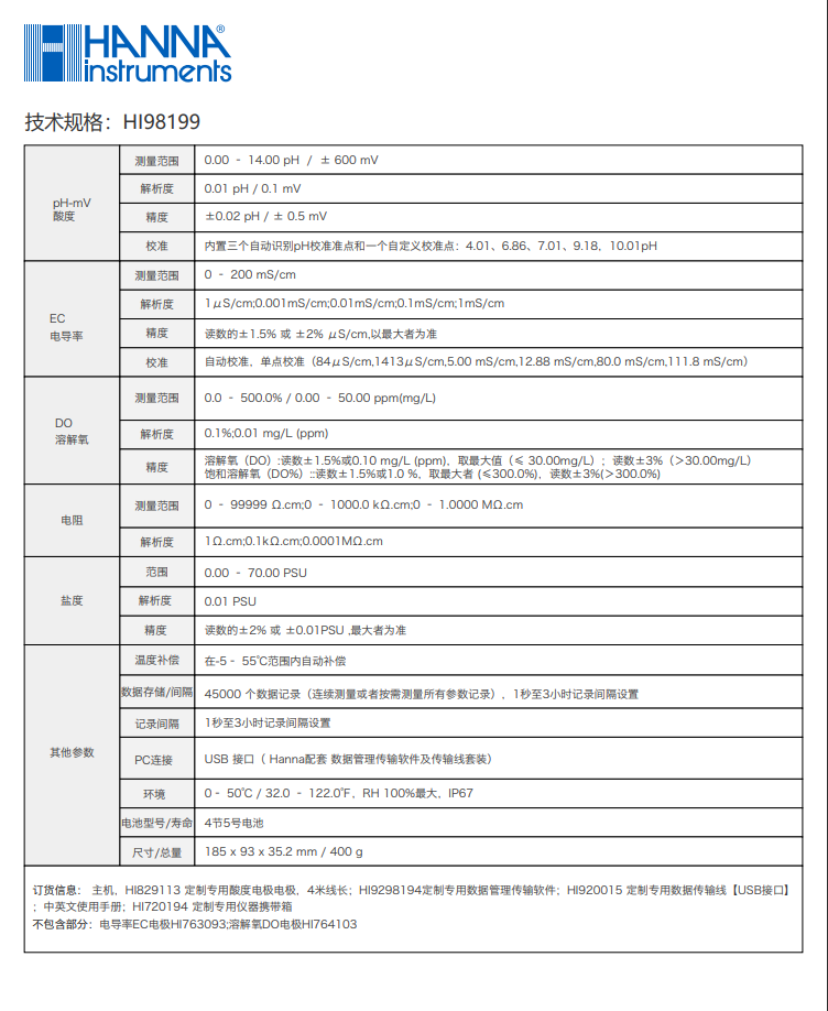 HI98199 pH EC TDS DO鹽度多參數(shù)水質測定儀溶解氧海水 哈納HANNA