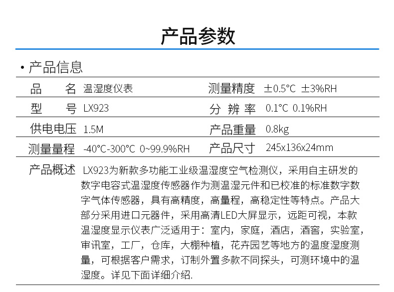 本網頁所展示的有關【清邁 LX923電子溫度計】的信息/圖片/參數等由的會員【清邁-深圳柏萊科技有限公司 】提供,由柏萊儀器網-專業銷售儀器儀表服務商-深圳柏萊科技有限公司會員【清邁-深圳柏萊科技有限公司 】自行對信息/圖片/參數等的真實性、準確性和合法性負責,本平臺(本網站)僅提供展示服務,請謹慎交易,因交易而產生的法律關系及法律糾紛由您自行協商解決,本平臺(本網站)對此不承擔任何責任。您在本網頁可以瀏覽【清邁 LX923電子溫度計】有關的信息/圖片/價格等及提供 【清邁 LX923電子溫度計】的商家公司簡介、聯系方式等信息。