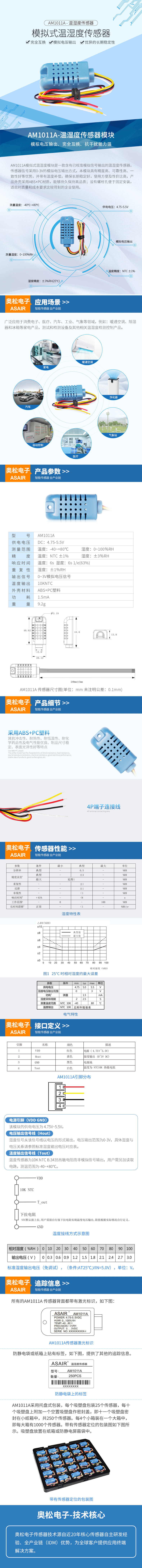 AM1011A模擬式溫濕度模塊是一款含有已校準模擬信號輸出的溫濕度傳感器,傳感器信號采用0-3V的模擬電壓輸出方式,本模塊具有精度高、可靠性高、一致性好等優勢,并帶有溫度補償,確保長期穩定好,使用方便及性價比高,產品外殼采用ABS+PC材質,能夠持久保持高品質;設有螺栓孔,便于固定安裝,適合對質量和成本要求比較苛刻的企業使用。