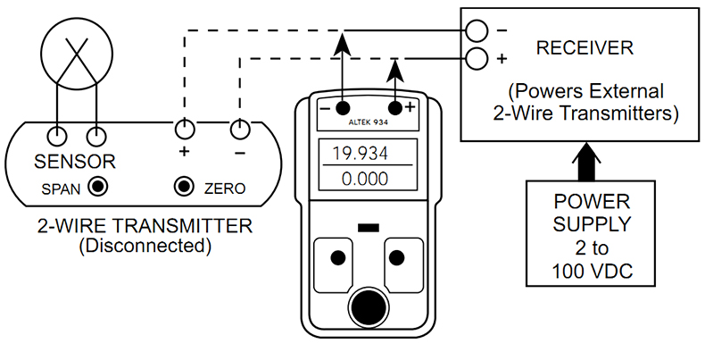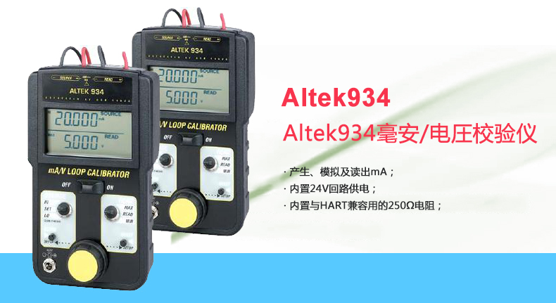 2線或4線制變送器在安裝前,可放在試驗臺上,使用934的24V供電,測試和校準。在任何過程校驗中它可同時向系統產生和讀取毫安和電壓信號,本儀表具有所有毫安和電壓校驗儀的功能