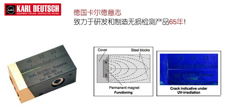 FLUXA 試塊9803.001是用來檢測和監(jiān)控?zé)晒獯艖乙旱撵`敏度的。它包含了一個磁極和一個人造裂紋,其顯示的不同長度取決于磁懸液的靈敏度。通過對比在不同介質(zhì)中FLUXA 試塊顯示的長度,靈敏度可以被檢測出來。通過周期性的檢測,可以控制由于使用導(dǎo)致的靈敏度下降的情況。