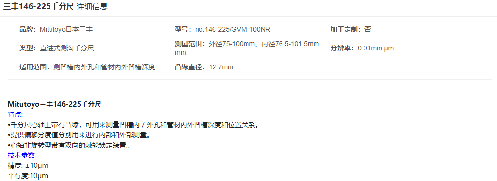 本網頁所展示的有關【三豐 146-225千分尺】的信息/圖片/參數等由的會員【日本三豐mitutoyo-深圳柏萊科技有限公司 】提供,由柏萊儀器網-專業銷售儀器儀表服務商-深圳柏萊科技有限公司會員【日本三豐mitutoyo-深圳柏萊科技有限公司 】自行對信息/圖片/參數等的真實性、準確性和合法性負責,本平臺(本網站)僅提供展示服務,請謹慎交易,因交易而產生的法律關系及法律糾紛由您自行協商解決,本平臺(本網站)對此不承擔任何責任。您在本網頁可以瀏覽【三豐 146-225千分尺】有關的信息/圖片/價格等及提供 【三豐 146-225千分尺】的商家公司簡介、聯系方式等信息。
