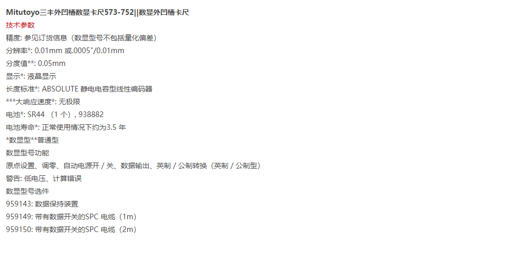 本網頁所展示的有關【三豐 573-752外凹槽數顯卡尺】的信息/圖片/參數等由的會員【日本三豐mitutoyo-深圳柏萊科技有限公司 】提供,由柏萊儀器網-專業銷售儀器儀表服務商-深圳柏萊科技有限公司會員【日本三豐mitutoyo-深圳柏萊科技有限公司 】自行對信息/圖片/參數等的真實性、準確性和合法性負責,本平臺(本網站)僅提供展示服務,請謹慎交易,因交易而產生的法律關系及法律糾紛由您自行協商解決,本平臺(本網站)對此不承擔任何責任。您在本網頁可以瀏覽【三豐 573-752外凹槽數顯卡尺】有關的信息/圖片/價格等及提供 【三豐 573-752外凹槽數顯卡尺】的商家公司簡介、聯系方式等信息。