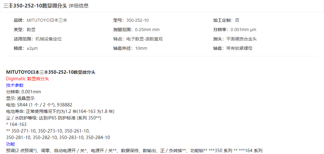 本網(wǎng)頁所展示的有關(guān)【三豐 350-252-10數(shù)顯微分頭】的信息/圖片/參數(shù)等由的會員【日本三豐mitutoyo-深圳柏萊科技有限公司 】提供,由柏萊儀器網(wǎng)-專業(yè)銷售儀器儀表服務(wù)商-深圳柏萊科技有限公司會員【日本三豐mitutoyo-深圳柏萊科技有限公司 】自行對信息/圖片/參數(shù)等的真實性、準(zhǔn)確性和合法性負(fù)責(zé),本平臺(本網(wǎng)站)僅提供展示服務(wù),請謹(jǐn)慎交易,因交易而產(chǎn)生的法律關(guān)系及法律糾紛由您自行協(xié)商解決,本平臺(本網(wǎng)站)對此不承擔(dān)任何責(zé)任。您在本網(wǎng)頁可以瀏覽【三豐 350-252-10數(shù)顯微分頭】有關(guān)的信息/圖片/價格等及提供 【三豐 350-252-10數(shù)顯微分頭】的商家公司簡介、聯(lián)系方式等信息。