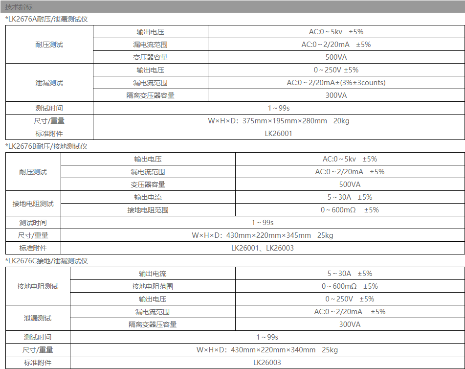 ■ LK2676系列測試儀是一款二合一的安規綜合測試儀器,是按照國際的標準要求設計而成,能在同一臺機器上進行兩個參數的連續測試。該產品結合眾多用戶的實際使用情況加,并加以提高、完善,是國內同擋機型中性價比最優的產品。