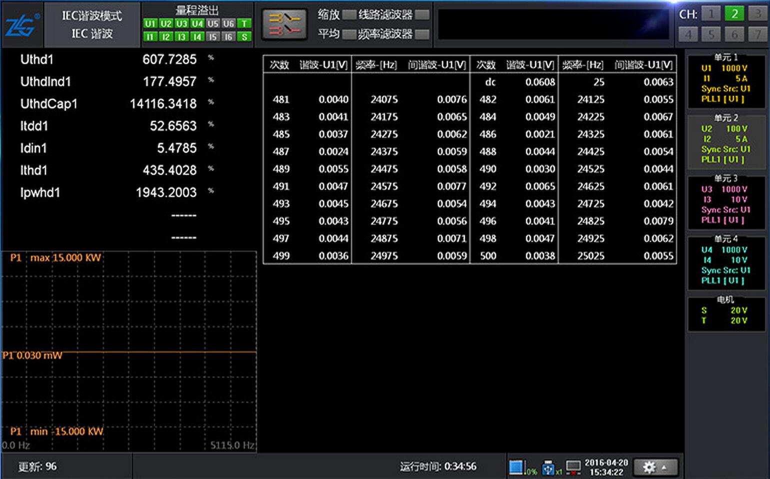 PA6000功率分析儀帶寬為DC/0.1Hz‐1MHz,由于采用了PLL源倍頻技術,可實現速度更快、動態范圍更廣的諧波測量,在諧波模式下可實現對電壓、電流基波、功率、相位、諧波成分和總諧波失真因數(THD)的準確測試。