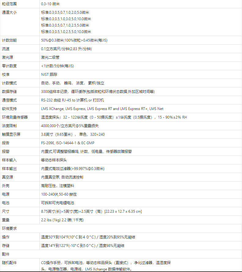 手持式空氣粒子計數器和空氣PM2.5空氣粒子計數器:0.3微米感應度,0.1CFM 流量。