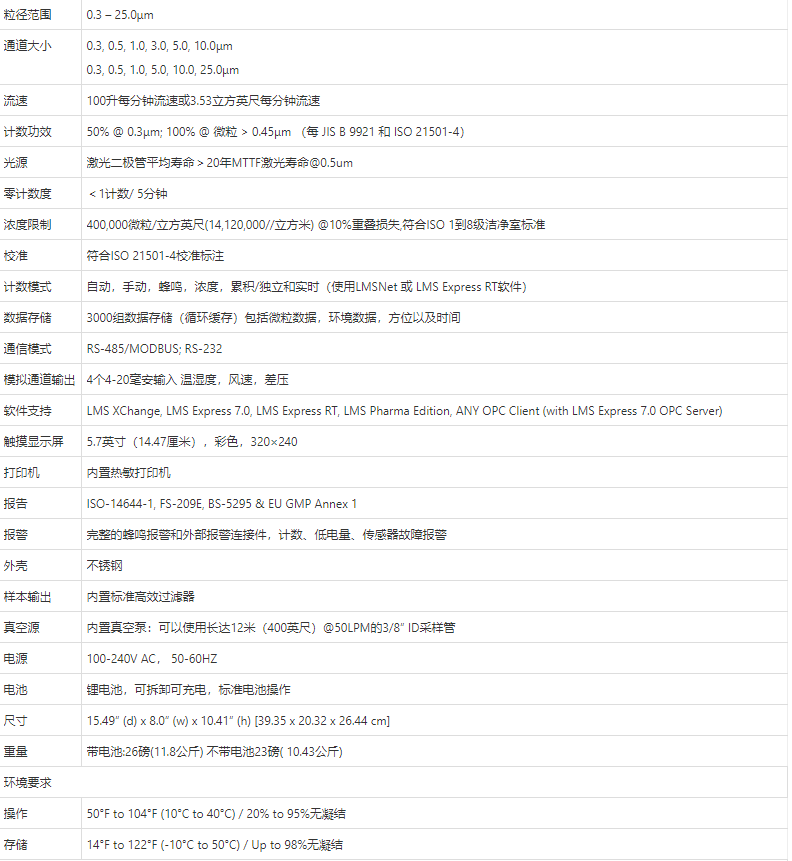 便攜式空氣粒子計數器:0.3微米感應度,100LPM流量