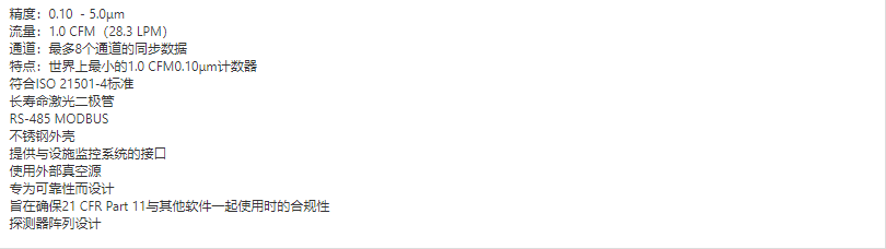 Remote 1104LD采用的光學和光電二極管系統,以在1.0CFM(28.3LPM)高流速下可監測最小0.10微米精度的顆粒,其提供連續的實時數據,相對每點的價格更經濟實惠。