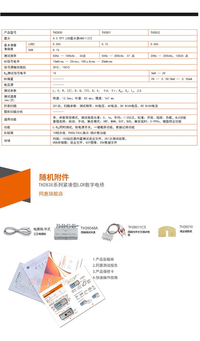 本網頁所展示的有關【TH2830數字電橋 LCR 高精度電容電感電阻測試儀 同惠】的信息/圖片/參數等由的會員【同惠電子 -深圳柏萊科技有限公司 】提供,由柏萊儀器網-專業銷售儀器儀表服務商-深圳柏萊科技有限公司會員【同惠電子 -深圳柏萊科技有限公司 】自行對信息/圖片/參數等的真實性、準確性和合法性負責,本平臺(本網站)僅提供展示服務,請謹慎交易,因交易而產生的法律關系及法律糾紛由您自行協商解決,本平臺(本網站)對此不承擔任何責任。您在本網頁可以瀏覽【TH2830數字電橋 LCR 高精度電容電感電阻測試儀 同惠】有關的信息/圖片/價格等及提供 【TH2830數字電橋 LCR 高精度電容電感電阻測試儀 同惠】的商家公司簡介、聯系方式等信息。