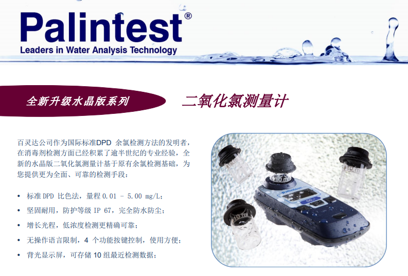 本網頁所展示的有關【百靈達PTH046二氧化氯測量計Palintest】的信息/圖片/參數等由的會員【百靈達palintest-深圳柏萊科技有限公司