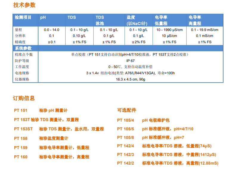 ●支持極高濃度 TDS 檢測(泳池等行業(yè)專用)。