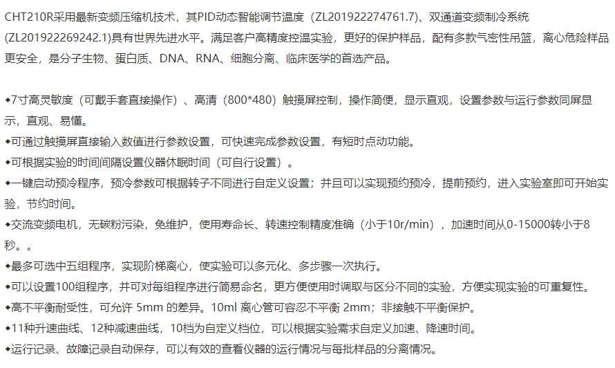 本網頁所展示的有關【大容量高速臺式冷凍離心機 湘儀CHT210R】的信息/圖片/參數等由的會員【湘儀cence-深圳柏萊科技有限公司 】提供,由柏萊儀器網-專業銷售儀器儀表服務商-深圳柏萊科技有限公司會員【湘儀cence-深圳柏萊科技有限公司 】自行對信息/圖片/參數等的真實性、準確性和合法性負責,本平臺(本網站)僅提供展示服務,請謹慎交易,因交易而產生的法律關系及法律糾紛由您自行協商解決,本平臺(本網站)對此不承擔任何責任。您在本網頁可以瀏覽【大容量高速臺式冷凍離心機 湘儀CHT210R】有關的信息/圖片/價格等及提供 【大容量高速臺式冷凍離心機 湘儀CHT210R】的商家公司簡介、聯系方式等信息。