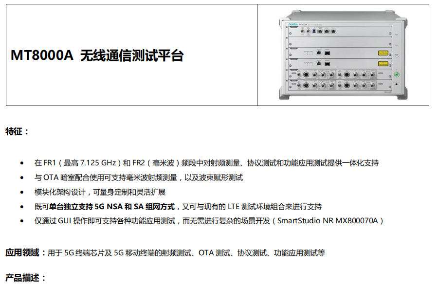 本網頁所展示的有關【無線通信測試平臺MT8000A】的信息/圖片/參數等由的會員【日本安立-深圳柏萊科技有限公司 】提供,由柏萊儀器網-專業銷售儀器儀表服務商-深圳柏萊科技有限公司會員【日本安立-深圳柏萊科技有限公司 】自行對信息/圖片/參數等的真實性、準確性和合法性負責,本平臺(本網站)僅提供展示服務,請謹慎交易,因交易而產生的法律關系及法律糾紛由您自行協商解決,本平臺(本網站)對此不承擔任何責任。您在本網頁可以瀏覽【無線通信測試平臺MT8000A】有關的信息/圖片/價格等及提供 【無線通信測試平臺MT8000A】的商家公司簡介、聯系方式等信息。