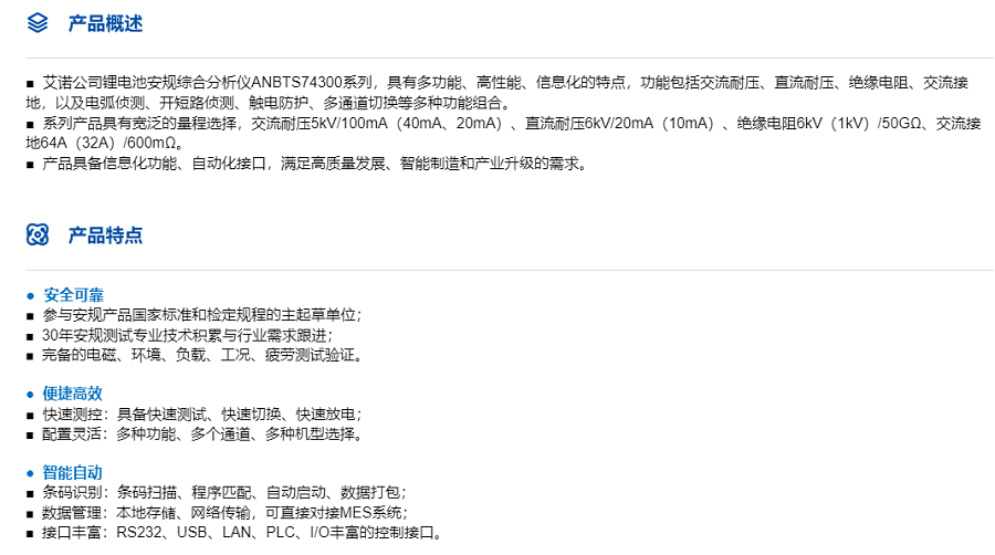 本網(wǎng)頁所展示的有關(guān)【鋰電池安規(guī)綜合分析儀ANBTS74300系列】的信息/圖片/參數(shù)等由的會員【艾諾ainuo -深圳柏萊科技有限公司 】提供,由柏萊儀器網(wǎng)-專業(yè)銷售儀器儀表服務(wù)商-深圳柏萊科技有限公司會員【艾諾ainuo -深圳柏萊科技有限公司 】自行對信息/圖片/參數(shù)等的真實性、準(zhǔn)確性和合法性負責(zé),本平臺(本網(wǎng)站)僅提供展示服務(wù),請謹慎交易,因交易而產(chǎn)生的法律關(guān)系及法律糾紛由您自行協(xié)商解決,本平臺(本網(wǎng)站)對此不承擔(dān)任何責(zé)任。您在本網(wǎng)頁可以瀏覽【鋰電池安規(guī)綜合分析儀ANBTS74300系列】有關(guān)的信息/圖片/價格等及提供 【鋰電池安規(guī)綜合分析儀ANBTS74300系列】的商家公司簡介、聯(lián)系方式等信息。