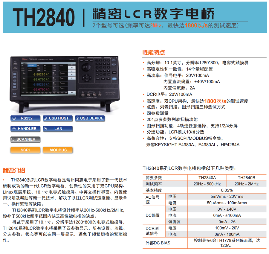 本網頁所展示的有關【TH2840A精密LCR數字電橋】的信息/圖片/參數等由的會員【同惠電子 -深圳柏萊科技有限公司 】提供,由柏萊儀器網-專業銷售儀器儀表服務商-深圳柏萊科技有限公司會員【同惠電子 -深圳柏萊科技有限公司 】自行對信息/圖片/參數等的真實性、準確性和合法性負責,本平臺(本網站)僅提供展示服務,請謹慎交易,因交易而產生的法律關系及法律糾紛由您自行協商解決,本平臺(本網站)對此不承擔任何責任。您在本網頁可以瀏覽【TH2840A精密LCR數字電橋】有關的信息/圖片/價格等及提供 【TH2840A精密LCR數字電橋】的商家公司簡介、聯系方式等信息。