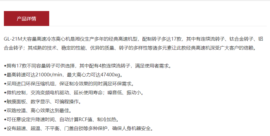 本網(wǎng)頁所展示的有關(guān)【GL-21M大容量高速冷凍離心機】的信息/圖片/參數(shù)等由的會員【湘儀cence-深圳柏萊科技有限公司 】提供,由柏萊儀器網(wǎng)-專業(yè)銷售儀器儀表服務(wù)商-深圳柏萊科技有限公司會員【湘儀cence-深圳柏萊科技有限公司 】自行對信息/圖片/參數(shù)等的真實性、準確性和合法性負責,本平臺(本網(wǎng)站)僅提供展示服務(wù),請謹慎交易,因交易而產(chǎn)生的法律關(guān)系及法律糾紛由您自行協(xié)商解決,本平臺(本網(wǎng)站)對此不承擔任何責任。您在本網(wǎng)頁可以瀏覽【GL-21M大容量高速冷凍離心機】有關(guān)的信息/圖片/價格等及提供 【GL-21M大容量高速冷凍離心機】的商家公司簡介、聯(lián)系方式等信息。