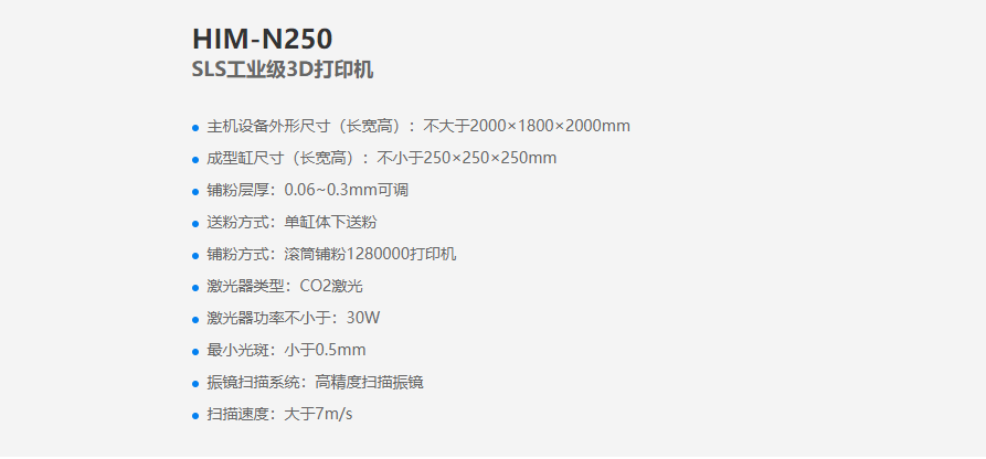本網頁所展示的有關【SLS工業級3D打印機HIM-N250】的信息/圖片/參數等由的會員【杭州喜馬拉雅-深圳柏萊科技有限公司 】提供,由柏萊儀器網-專業銷售儀器儀表服務商-深圳柏萊科技有限公司會員【杭州喜馬拉雅-深圳柏萊科技有限公司 】自行對信息/圖片/參數等的真實性、準確性和合法性負責,本平臺(本網站)僅提供展示服務,請謹慎交易,因交易而產生的法律關系及法律糾紛由您自行協商解決,本平臺(本網站)對此不承擔任何責任。您在本網頁可以瀏覽【SLS工業級3D打印機HIM-N250】有關的信息/圖片/價格等及提供 【SLS工業級3D打印機HIM-N250】的商家公司簡介、聯系方式等信息。