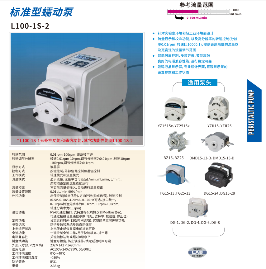 本網頁所展示的有關【L100-1S-2標準型蠕動泵】的信息/圖片/參數等由的會員【蘭格-深圳柏萊科技有限公司 】提供,由柏萊儀器網-專業銷售儀器儀表服務商-深圳柏萊科技有限公司會員【蘭格-深圳柏萊科技有限公司 】自行對信息/圖片/參數等的真實性、準確性和合法性負責,本平臺(本網站)僅提供展示服務,請謹慎交易,因交易而產生的法律關系及法律糾紛由您自行協商解決,本平臺(本網站)對此不承擔任何責任。您在本網頁可以瀏覽【L100-1S-2標準型蠕動泵】有關的信息/圖片/價格等及提供 【L100-1S-2標準型蠕動泵】的商家公司簡介、聯系方式等信息。