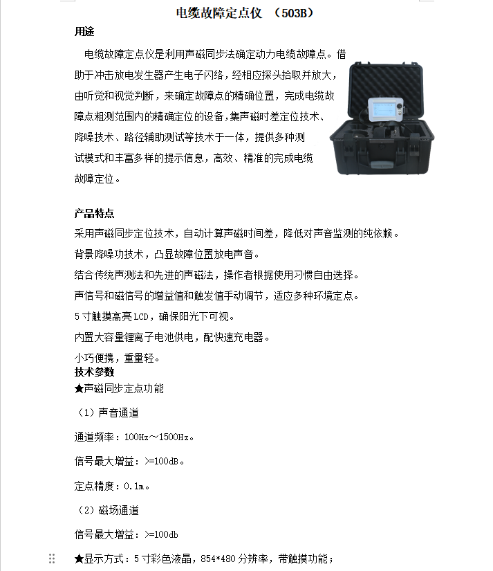 本網頁所展示的有關【電纜故障定點儀LS-503】的信息/圖片/參數等由的會員【LLS-深圳柏萊科技有限公司 】提供,由柏萊儀器網-專業銷售儀器儀表服務商-深圳柏萊科技有限公司會員【LLS-深圳柏萊科技有限公司 】自行對信息/圖片/參數等的真實性、準確性和合法性負責,本平臺(本網站)僅提供展示服務,請謹慎交易,因交易而產生的法律關系及法律糾紛由您自行協商解決,本平臺(本網站)對此不承擔任何責任。您在本網頁可以瀏覽【電纜故障定點儀LS-503】有關的信息/圖片/價格等及提供 【電纜故障定點儀LS-503】的商家公司簡介、聯系方式等信息。