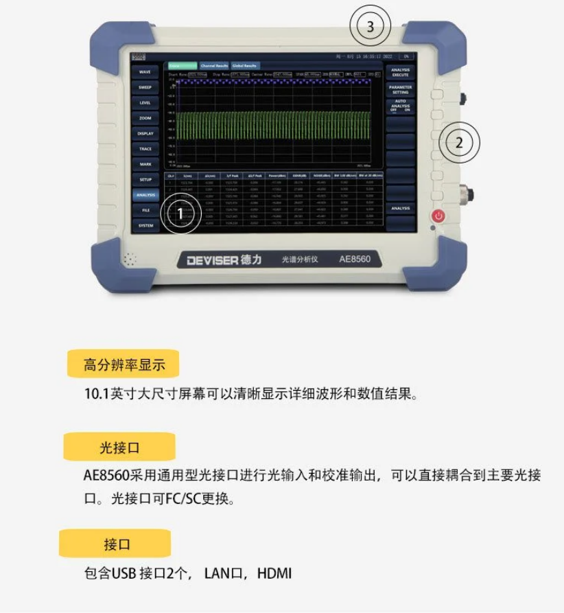 AE8560手持式光譜分析儀 單模和多模光纖光譜測試 德力光電