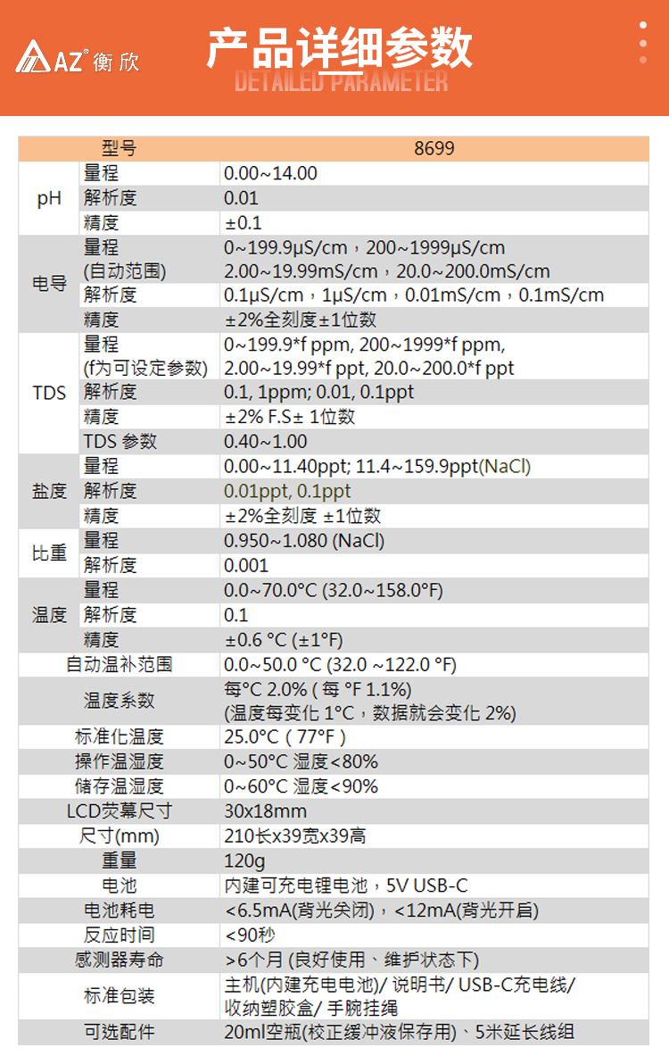 本網(wǎng)頁所展示的有關(guān)【AZ8699便攜TDS水質(zhì)鹽度計 衡欣電導率EC計 鹵汁鹽度淡水養(yǎng)殖檢測儀 AZ衡欣】的信息/圖片/參數(shù)等由的會員【臺灣衡欣AZ-深圳柏萊科技有限公司 】提供,由柏萊儀器網(wǎng)-專業(yè)銷售儀器儀表服務商-深圳柏萊科技有限公司會員【臺灣衡欣AZ-深圳柏萊科技有限公司 】自行對信息/圖片/參數(shù)等的真實性、準確性和合法性負責,本平臺(本網(wǎng)站)僅提供展示服務,請謹慎交易,因交易而產(chǎn)生的法律關(guān)系及法律糾紛由您自行協(xié)商解決,本平臺(本網(wǎng)站)對此不承擔任何責任。您在本網(wǎng)頁可以瀏覽【AZ8699便攜TDS水質(zhì)鹽度計 衡欣電導率EC計 鹵汁鹽度淡水養(yǎng)殖檢測儀 AZ衡欣】有關(guān)的信息/圖片/價格等及提供 【AZ8699便攜TDS水質(zhì)鹽度計 衡欣電導率EC計 鹵汁鹽度淡水養(yǎng)殖檢測儀 AZ衡欣】的商家公司簡介、聯(lián)系方式等信息。