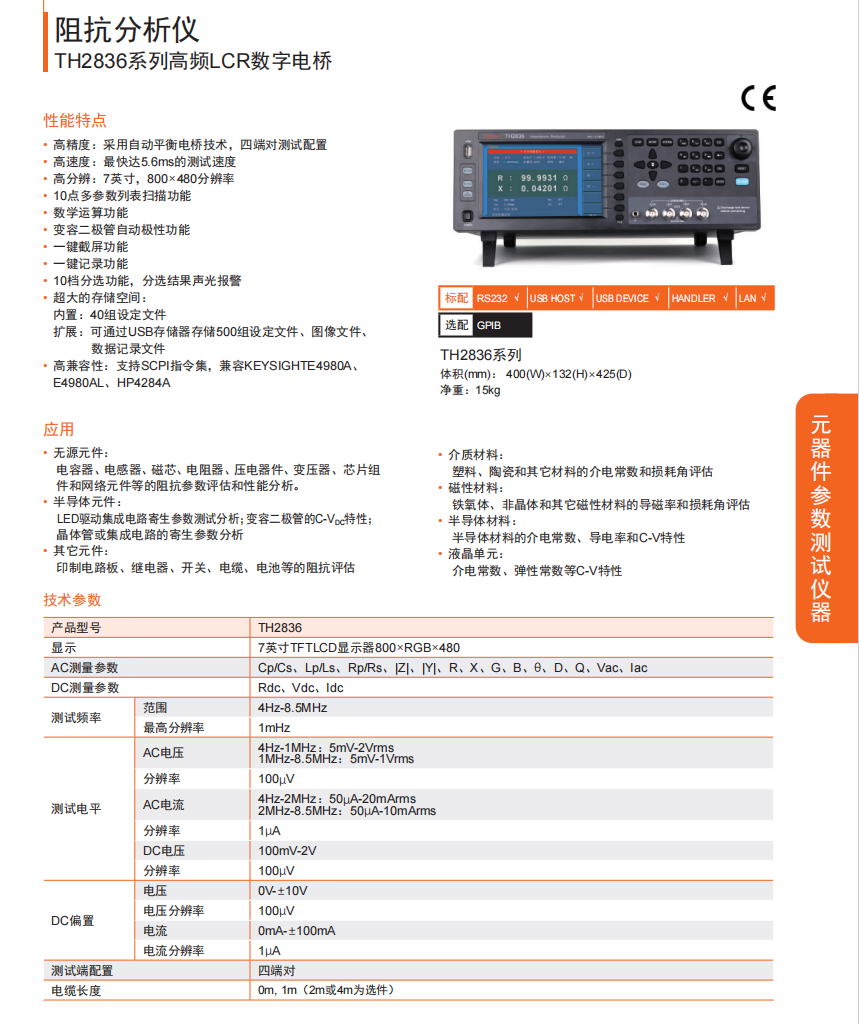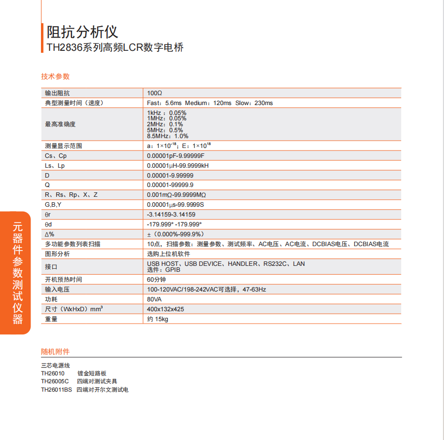 本網頁所展示的有關【TH2836系列高頻LCR數字電橋】的信息/圖片/參數等由的會員【同惠電子 -深圳柏萊科技有限公司 】提供,由柏萊儀器網-專業銷售儀器儀表服務商-深圳柏萊科技有限公司會員【同惠電子 -深圳柏萊科技有限公司 】自行對信息/圖片/參數等的真實性、準確性和合法性負責,本平臺(本網站)僅提供展示服務,請謹慎交易,因交易而產生的法律關系及法律糾紛由您自行協商解決,本平臺(本網站)對此不承擔任何責任。您在本網頁可以瀏覽【TH2836系列高頻LCR數字電橋】有關的信息/圖片/價格等及提供 【TH2836系列高頻LCR數字電橋】的商家公司簡介、聯系方式等信息。